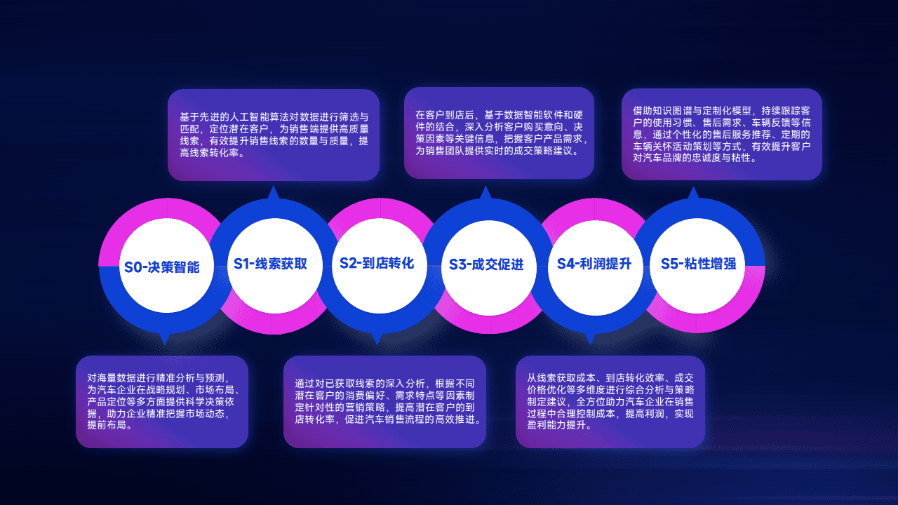 通过拓宽潜在客户来源、、优化线索分配并提高到店转化率,,以增强销售效率。。同时,,,,利用线索数据不断优化分析模型,,有效提升转化率,,,扩大营销影响力。。